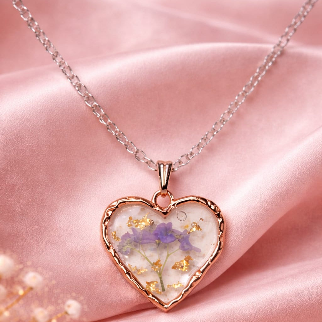 ✔ Real flowers preserved forever                                               ✔ Elegant heart design with gold foil